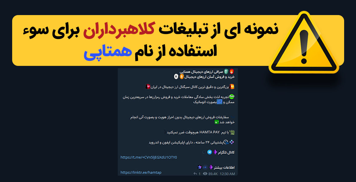 به گزارش آوای اقتصاد و به نقل از دنیای اقتصاد ،یکی از بدترین این موارد سوء استفاده سوداگران از نام و اعتبار برندهای مطرح برای کلاهبرداری و شیادی از افراد است. در یکی از تازهترین این اقدامات این بار کلاهبرداران با سوء استفاده از نام صرافی ارز دیجیتال همتاپی (Hamtapay) و با جعل هویت این صرافی معتبر و قدیمی ایرانی اقدام به فریب مالباختگان کردند.