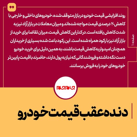 در کنار این کاهش قیمت، میزان تقاضا برای خرید از بازار آزاد نیز با رکود همراه شده است. این رکود باعث شده بسیاری از خریداران همچنان امیدوار به کاهش قیمت باشند، به همین دلیل برای خرید خودرو دست نگه داشته و فروشندگانی که نیاز به پول دارند، حاضرند با قیمت پایینتر خودروهای خود را به فروش برسانند.