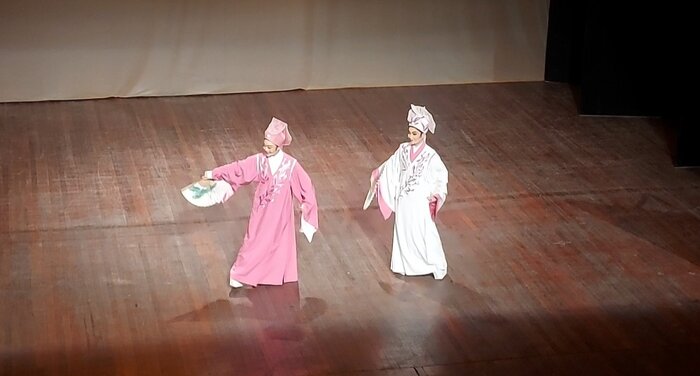 در صحنه دوم «عاشقان پروانه لیانگ جو» دو شخصیت با لباس های سفید و صورتی وارد صحنه شدند و «شهر را ترک و از گردنه ها عبور می کنیم»، «همانطور که می گویند بعد از یک سفر طولانی باید از یکدیگر خداحافظی کنیم» و در اجرای آخر «نغمه دفن گل ها» سه شخصیت با لباس های قرمز و نیلوفری به روی صحنه آمدند «زیبا رویان جهان بسیارند و من تنها به تو دل می سپارم».