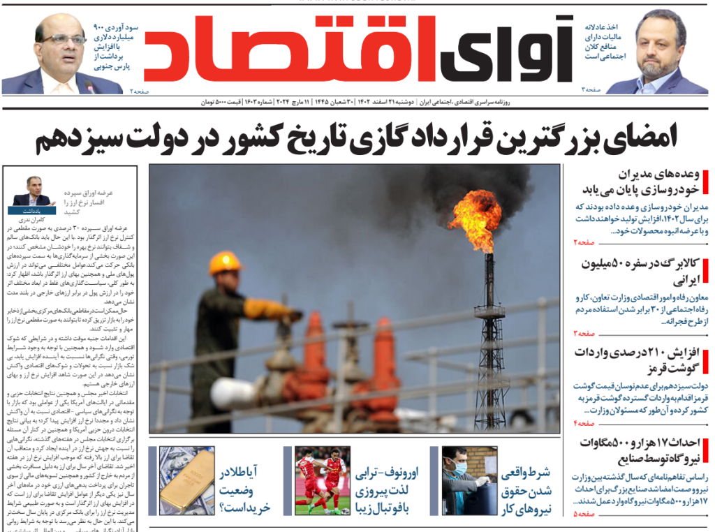روزنامه آوای اقتصاد مورخ ۱۴۰۲/۱۲/۲۱