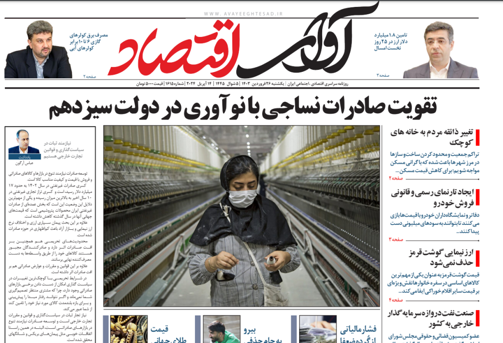 روزنامه آوای اقتصاد مورخ ۱۴۰۳/۰۱/۲۶