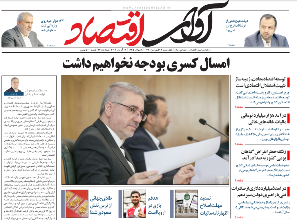 روزنامه آوای اقتصاد مورخ ۱۴۰۳/۰۱/۲۹