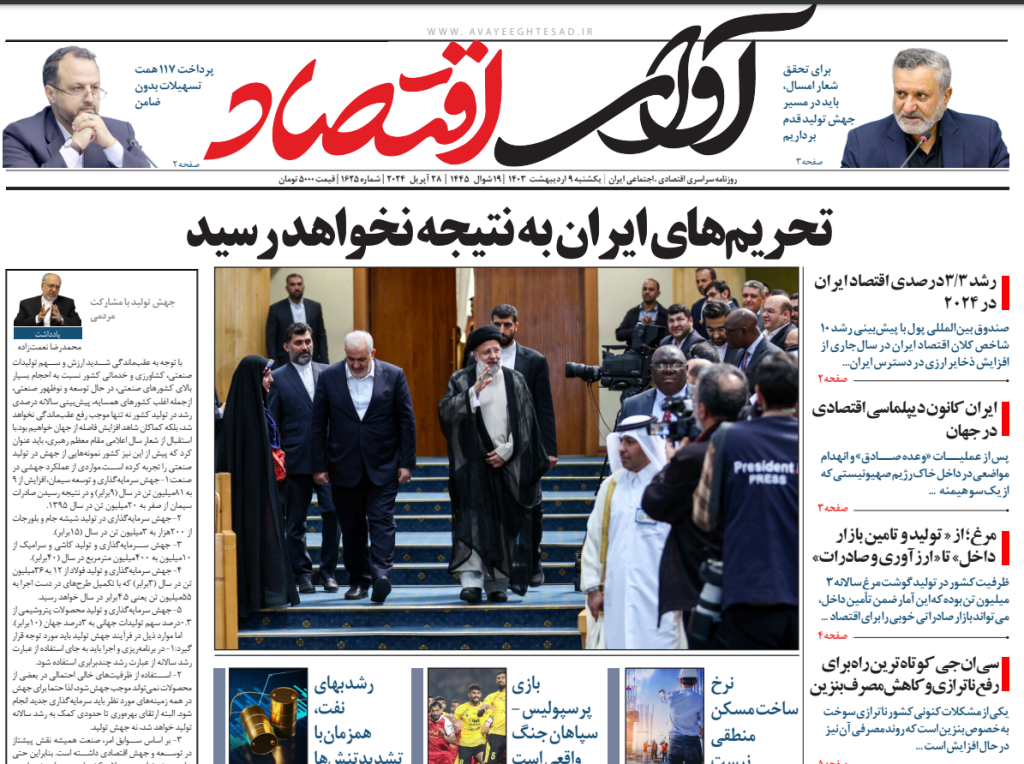 روزنامه آوای اقتصاد مورخ ۱۴۰۳/۰۲/۰۹