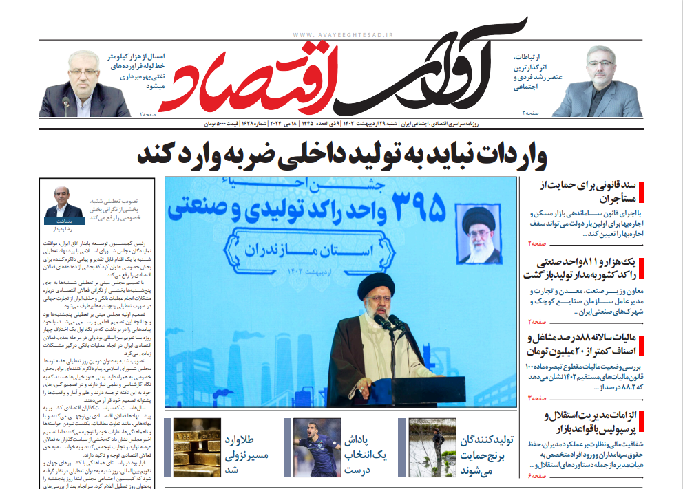 روزنامه آوای اقتصاد مورخ ۱۴۰۳/۰۲/۲۹