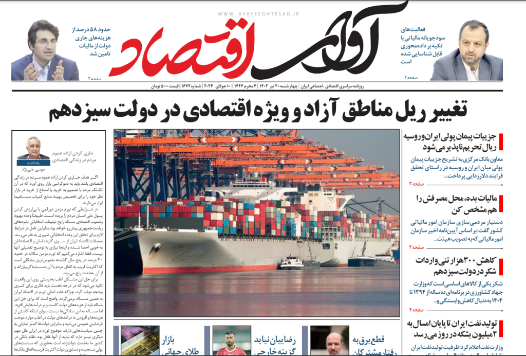 روزنامه آوای اقتصاد مورخ ۱۴۰۳/۰۴/۲۰