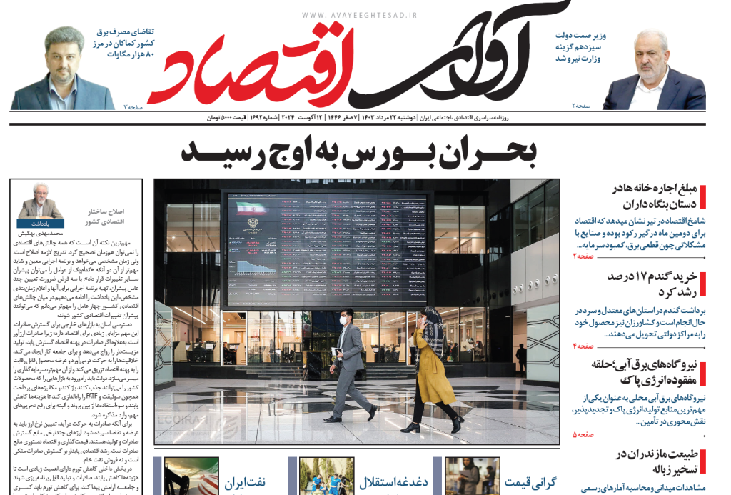 روزنامه آوای اقتصاد مورخ ۱۴۰۳/۰۵/۲۲