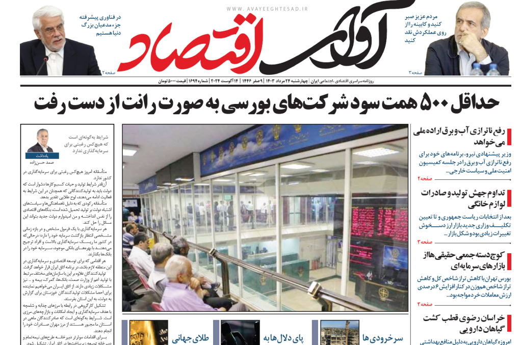 روزنامه آوای اقتصاد مورخ ۱۴۰۳/۰۵/۲۴