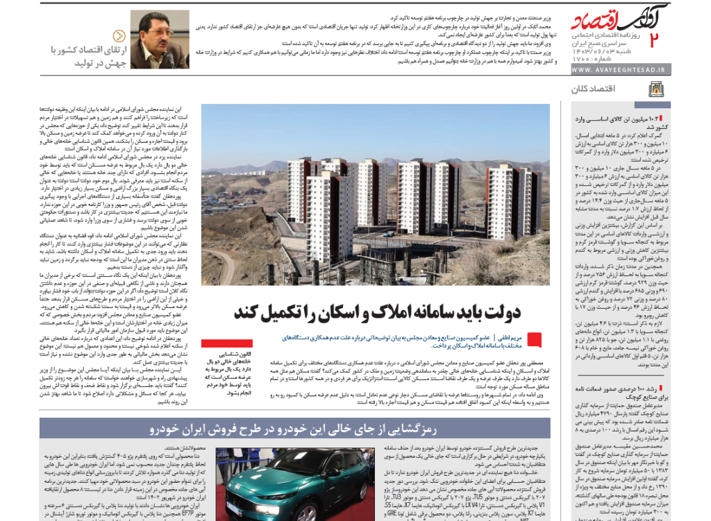 روزنامه آوای اقتصاد مورخ ۱۴۰۳/۰۶/۰۳