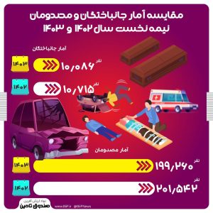 بر اساس آمار منتشر شده توسط سازمان پزشکی قانونی، در نیمه نخست سال ۱۴۰۳، تعداد ۱۰ هزار و ۸۶ نفر بر اثر حوادث رانندگی جانباخته اند که این آمار در بازه شش ماهه سال ۱۴۰۲، تعداد ۱۰ هزارو ۷۱۵ نفر می باشد.