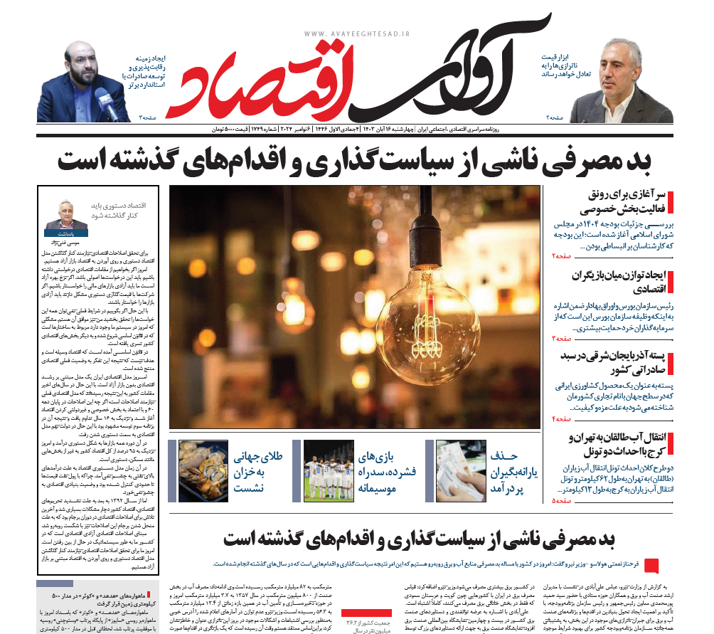روزنامه آوای اقتصاد ۱۴۰۳/۰۸/۱۶