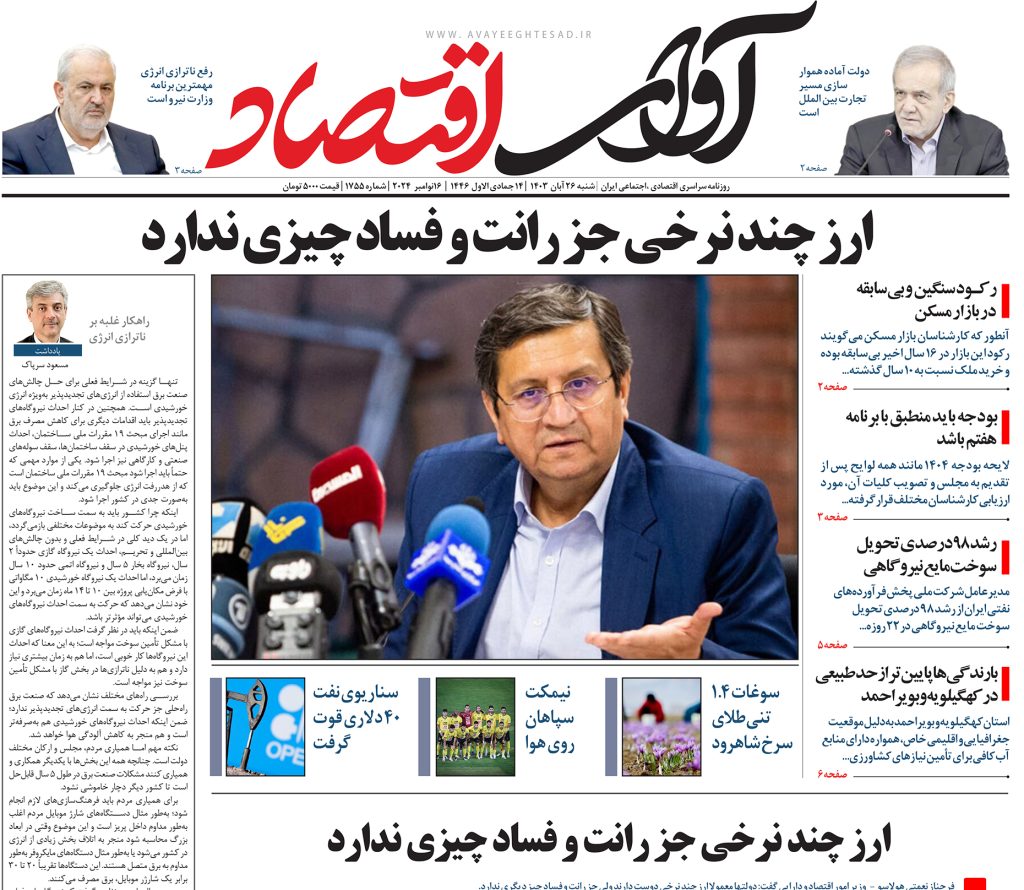 روزنامه آوای اقتصاد ۲۶ آبان ۱۴۰۳